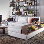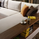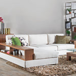 Modern, grand and elegant with a touch of contemporary storage aesthetics, the Elda Modular Sofa With Removable Covers gives you the freedom to create the perfect living room arrangement for your home. A modular design crafted of wood and fabric upholstery, the sofa features comfortable cushions, elegant wooden arm storage and flexible seat configurations. Seat and backrest cushions have removable covers and the sofa is available in L-shape or 4 seater configurations.