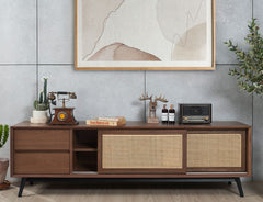 • Gold tips on the leg gives a touch of metallic highlight against the walnut veneer, and fabric textures