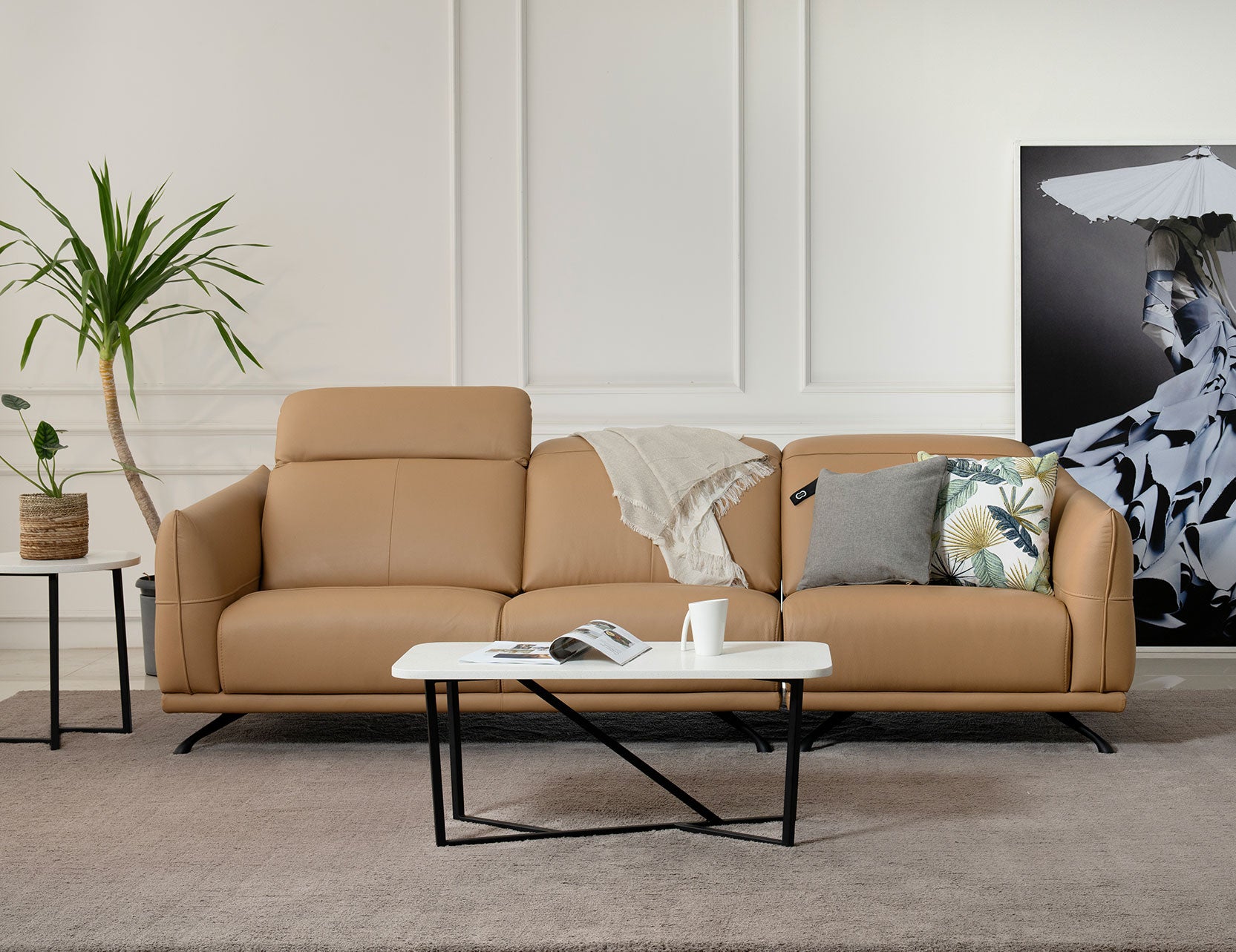 The ETTA Modular Sofa combines European-inspired design with versatility, offering both comfort and style for medium to large living spaces. Upholstered in full or half leather, as well as synthetic options, the sofa is supported by a Nozag seat with high-resilient foam, ensuring a soft yet durable seating experience.
