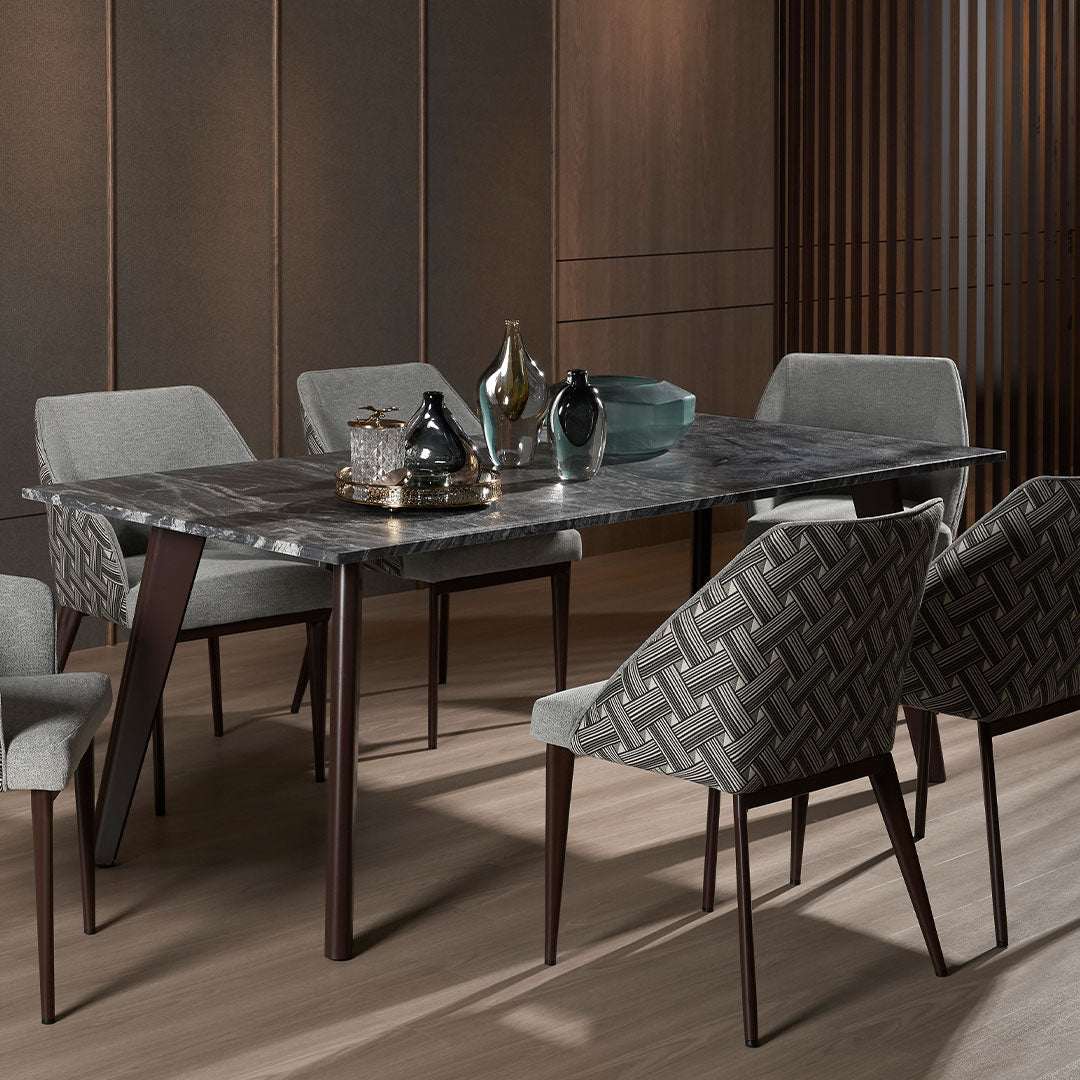 The BLACK BEAUTY Granite Dining Table with HATCH Dining Chairs adds dramatic elegance to your dining space. Its black granite surface is not only striking but also durable and heat-resistant, while HATCH chairs deliver ergonomic comfort with a sleek modern design.