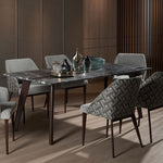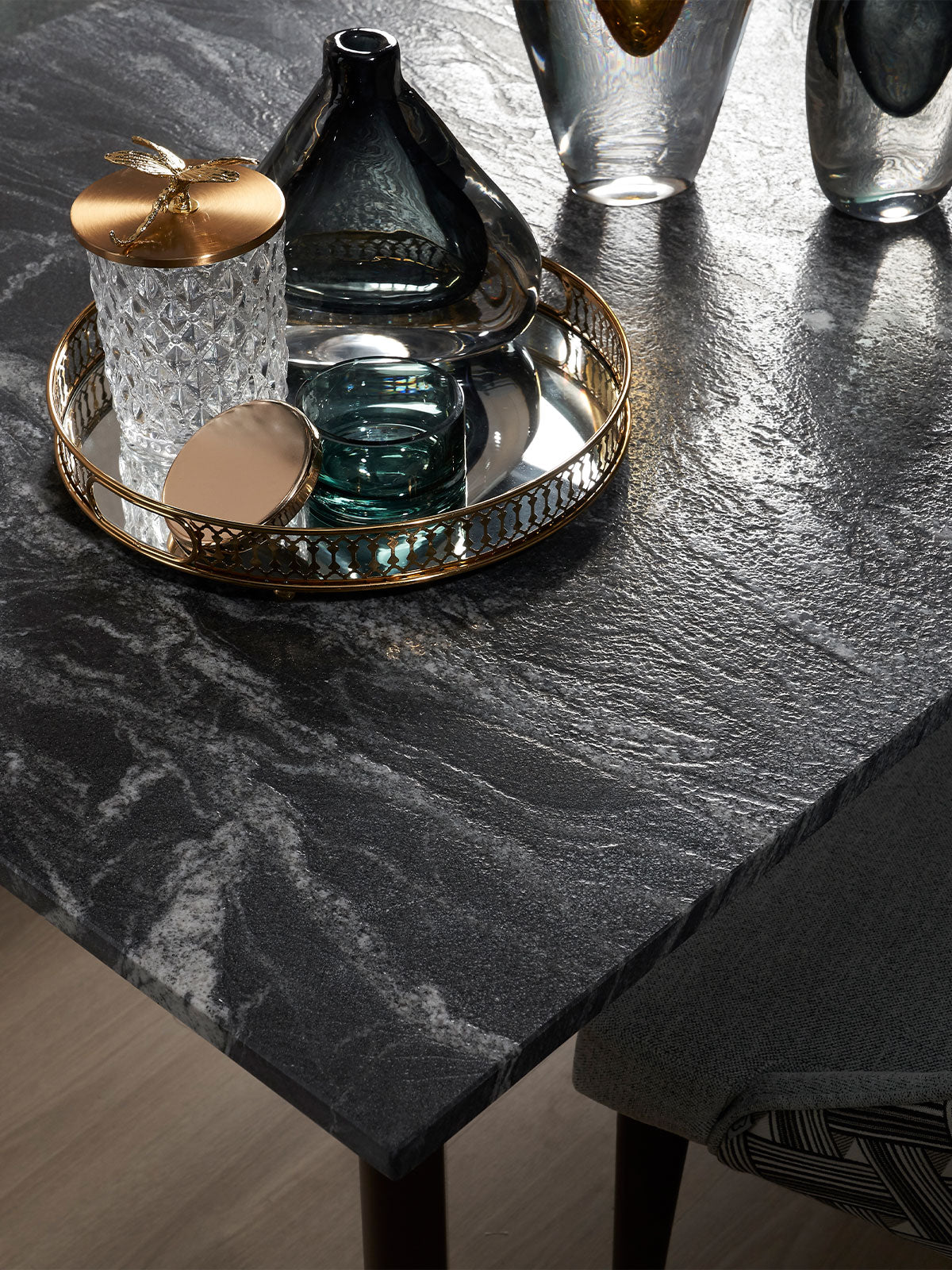The BLACK BEAUTY Granite Dining Table with HATCH Dining Chairs adds dramatic elegance to your dining space. Its black granite surface is not only striking but also durable and heat-resistant, while HATCH chairs deliver ergonomic comfort with a sleek modern design.