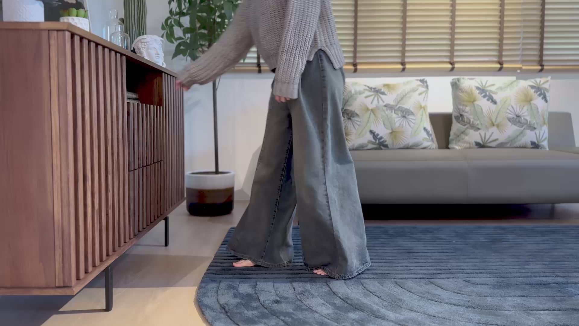 Embrace the elegance of sideboard legs against a wall wall and opt for a floor-touching cabinet for added stability if you have concern that your storage load may be heavy.