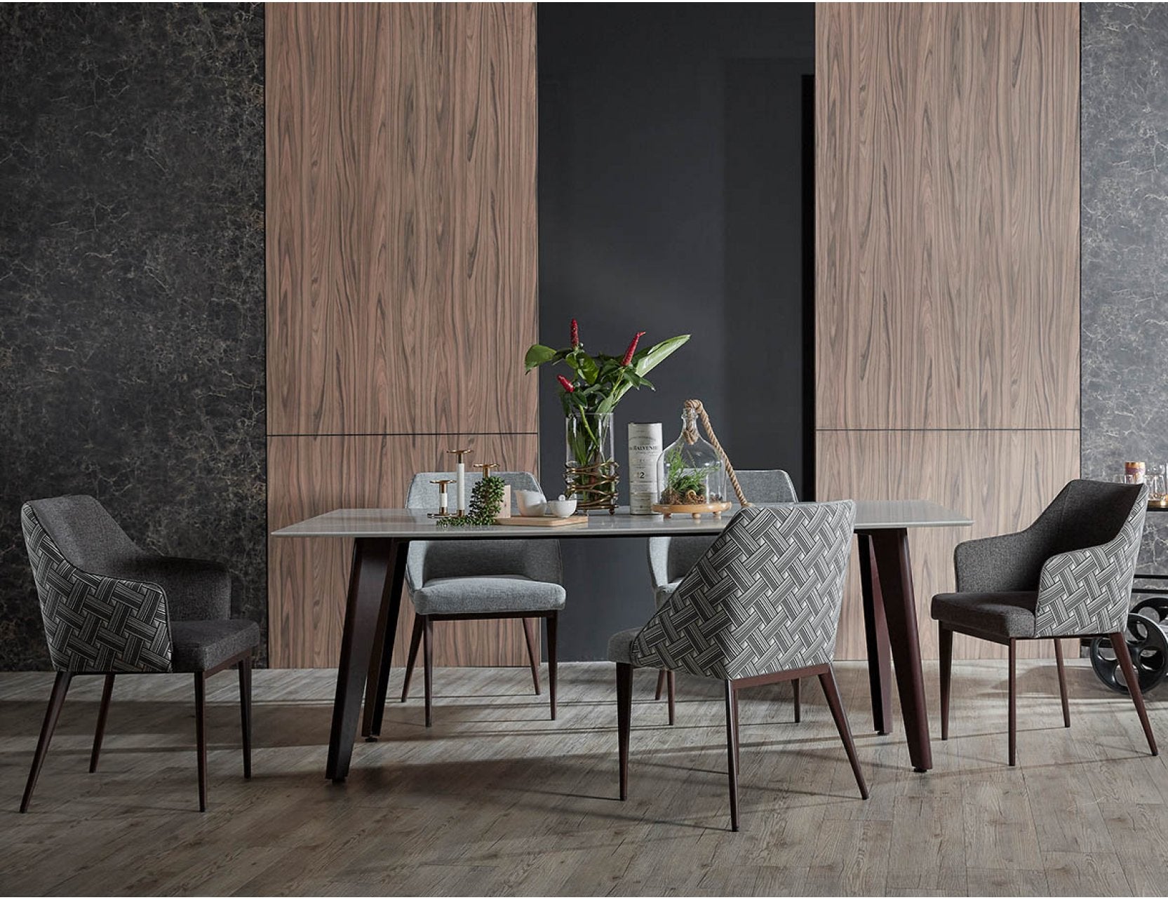 The HATCH Dining Chair with Armrest brings comfort, style, and support into one beautifully modern package. Designed with a cosy fabric seat and roomy squarish backrest, this chair is perfect for everyone—big or small. Its shape not only offers great back support but also looks more substantial and elegant in spacious interiors.