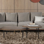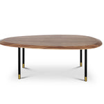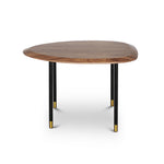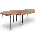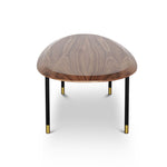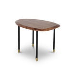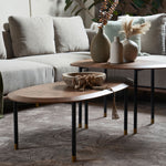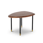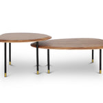 Celadon Coffee Table has a striking design that will make a statement in any living space. Celadon Coffee Table’s walnut veneer top edges are beveled and gold-tipped steel legs for an expertly finished. The coffee table's nesting design can be used together or singly to bless various living spaces revealing its subtle vintage vibes.