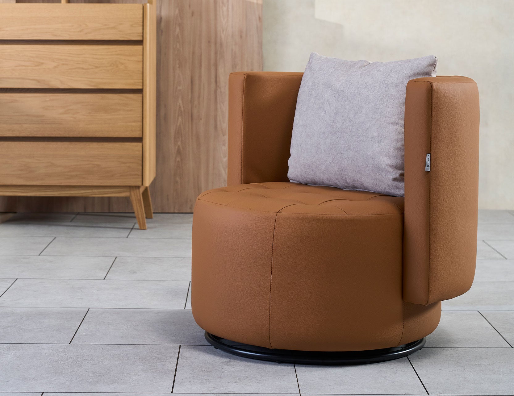 The CLUB Swivel Armchair is your new go-to seat for stylish comfort. Wrapped in soft faux leather with a cosy fabric backrest cushion, this chair brings together the best of both materials. The seat is supported by webbing and high-resilient foam, so it feels just right whether you’re lounging, chatting, or just relaxing.