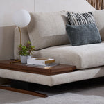 The newly updated modular sofa, where functionality meets style seamlessly. Each module is designed to create a spacious configuration for your living spaces. The armrest is unique on its own, as it comes with removable covers featuring convenient Velcro closures. With this feature, keeping your furniture fresh and stylish is easy as a quick change. The seats and backrest follow suit, as it is hassle-free on maintenance. The steel sheet metal legs are powder-coated in a matte black finish with laser-cut Cellini branding, adding a touch of personalisation to your furniture, complementing the warmth of sungkai timber finish in a light walnut hue. The main highlight would be the side coffee tabletop, perfect for an expansive configuration and those precious small spaces. It is not just a table; it’s your versatile companion.