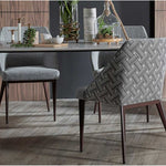 The HATCH Dining Chair is all about comfort and style with a modern twist. Its squarish backrest gently curves to support your body, offering a comfy and spacious seat whether you’re enjoying dinner or chatting for hours. The full fabric finish adds warmth and softness to your dining space.