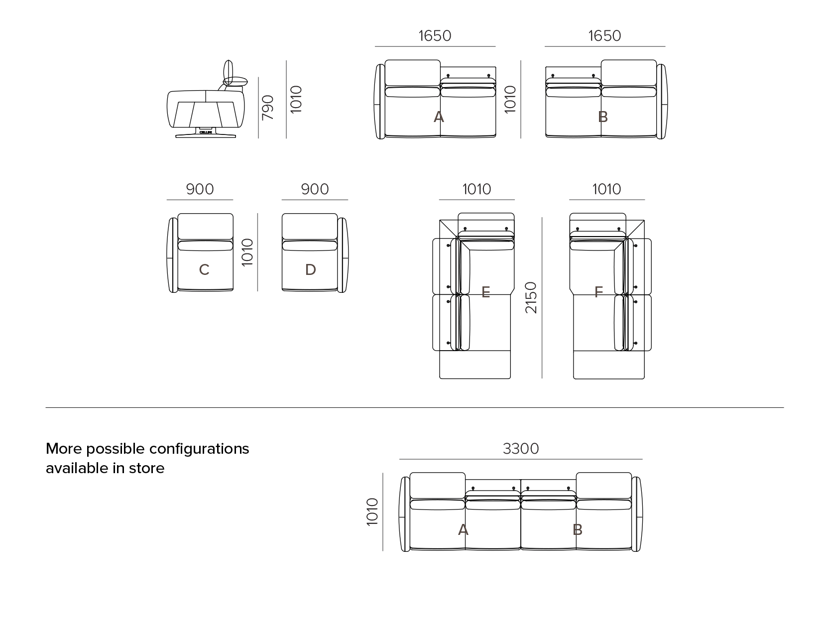 2 Seater (Module C+D): W1800 x D900 x H790 mm