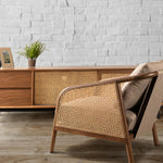 Meet the NASH Sofa—a perfect blend of modern design and rustic charm. Upholstered in full fabric for a soft and cosy feel, the sofa is supported by a sturdy, solid Sungkai timber frame in a light walnut finish. The woven rattan accents add a touch of traditional craftsmanship, bringing warmth and texture to any contemporary interior.